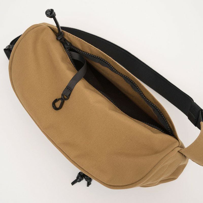 裏地にリサイクルナイロンオックスを使用。70年代にTHE NORTH FACEで作られたウエストバッグのデザインをベースに、素材やディテールをアップデートしたモデル。