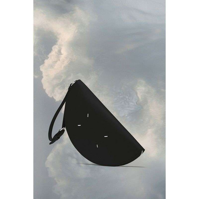 サフィアーノレザーを使用した、ジッパー開閉のレザーポーチ。フロントにMaison Margielaのシグネチャーである4ステッチが入っており、その反対側にラベルが付いています。