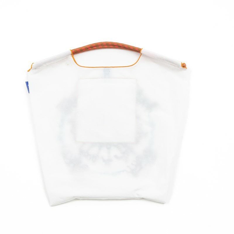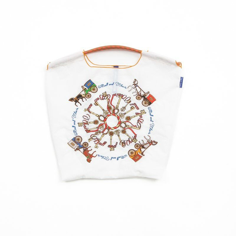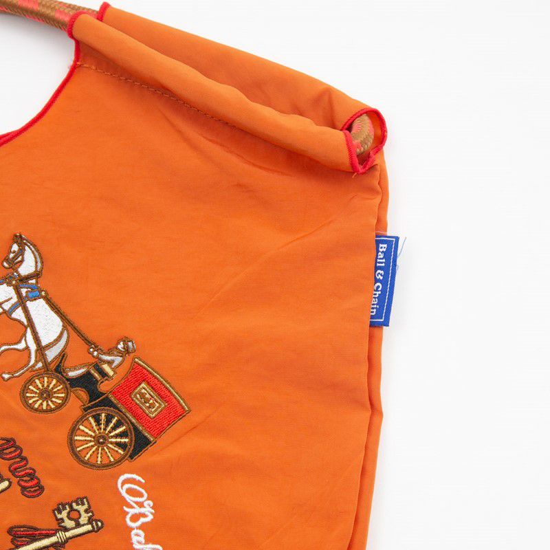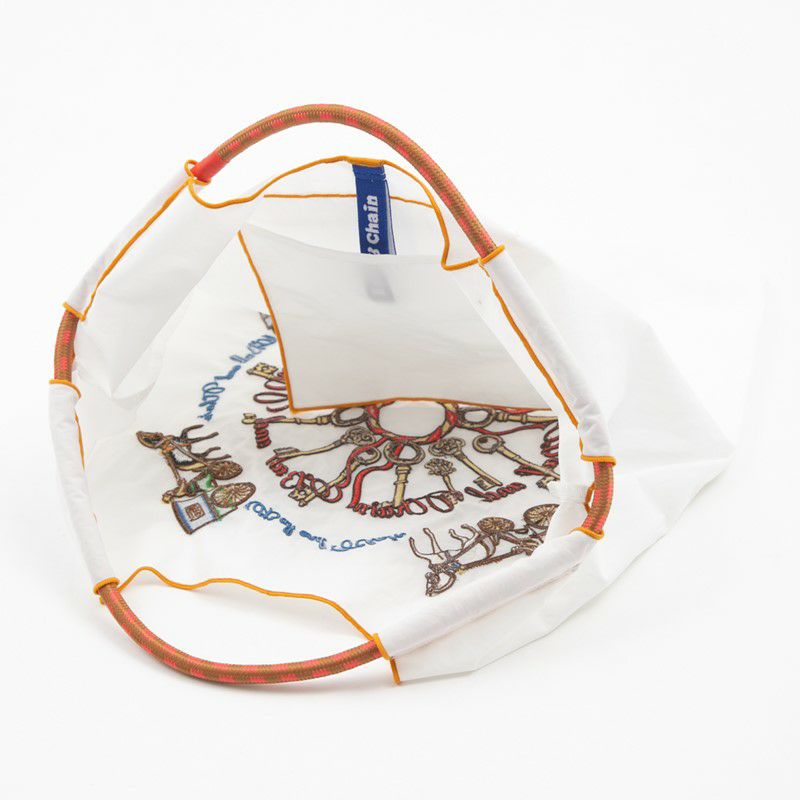 耐久性、撥水性に優れた厚手のポリエステル素材に、グラフィックデザインをそのまま「刺繍」で施すことで高級感があり、デザイン性の高いバッグとなっております。丸く折りたたみ内側に付属のバンドで止めるとよりコンパクトに。収納に困らず、持ち運びにも便利です。