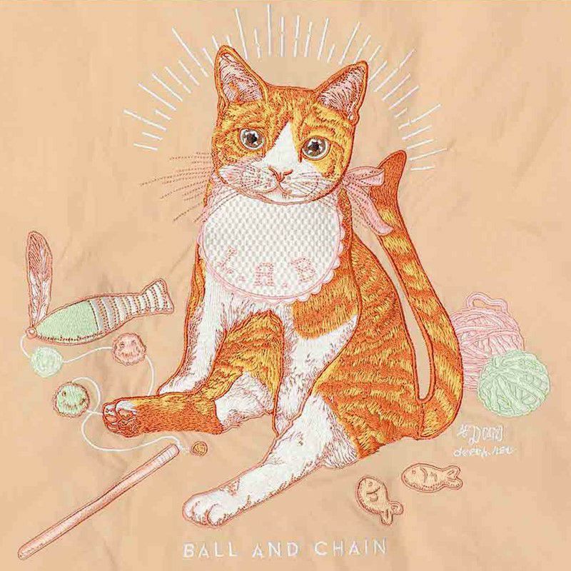 うるうるとした愛くるしい眼でこちらを見る茶トラの猫が刺繍されたデザイン。見るたびに癒されること間違いなしのデザインです。