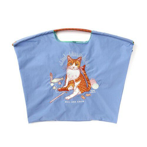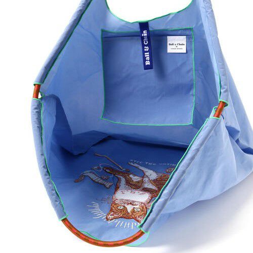 耐久性、撥水性に優れた厚手のポリエステル素材に、グラフィックデザインをそのまま「刺繍」で施すことで高級感があり、デザイン性の高いバッグとなっております。丸く折りたたみ内側に付属のバンドで止めるとよりコンパクトに。収納に困らず、持ち運びにも便利です。