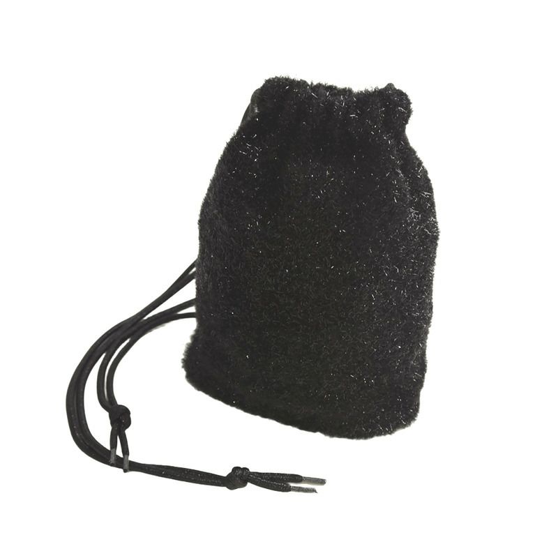 スタイリングのアクセントになること間違いなし!グリッターフェザーの存在感が輝く巾着バッグ。