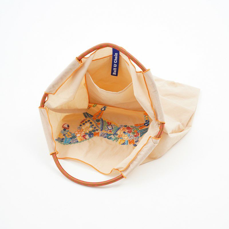 新色追加されました。 Ball and Chainは大切に使い続けたいと思える優れた デザインのショッピングバッグです。 耐久性、撥水性に優れた厚手のポリエステル素材に、 グラフィックデザインをそのまま「刺繍」で施すことで、 高級感がありデザイン性の高いバッグとなっています。 丸く折りたたみ付属のゴムバンドでとめると手のひらほどの コンパクトサイズになるため、持ち運びにも便利です。 普段のお買い物はもちろん、エコなプレゼントとしてもおススメです。