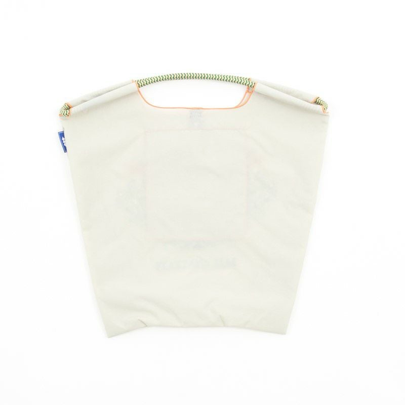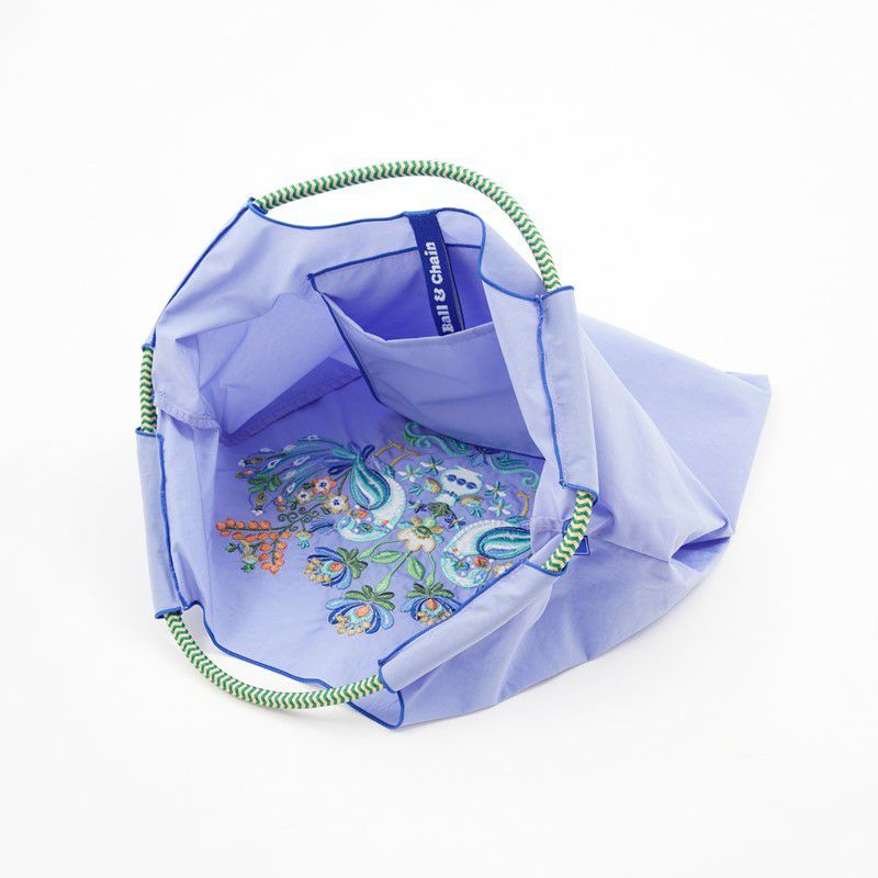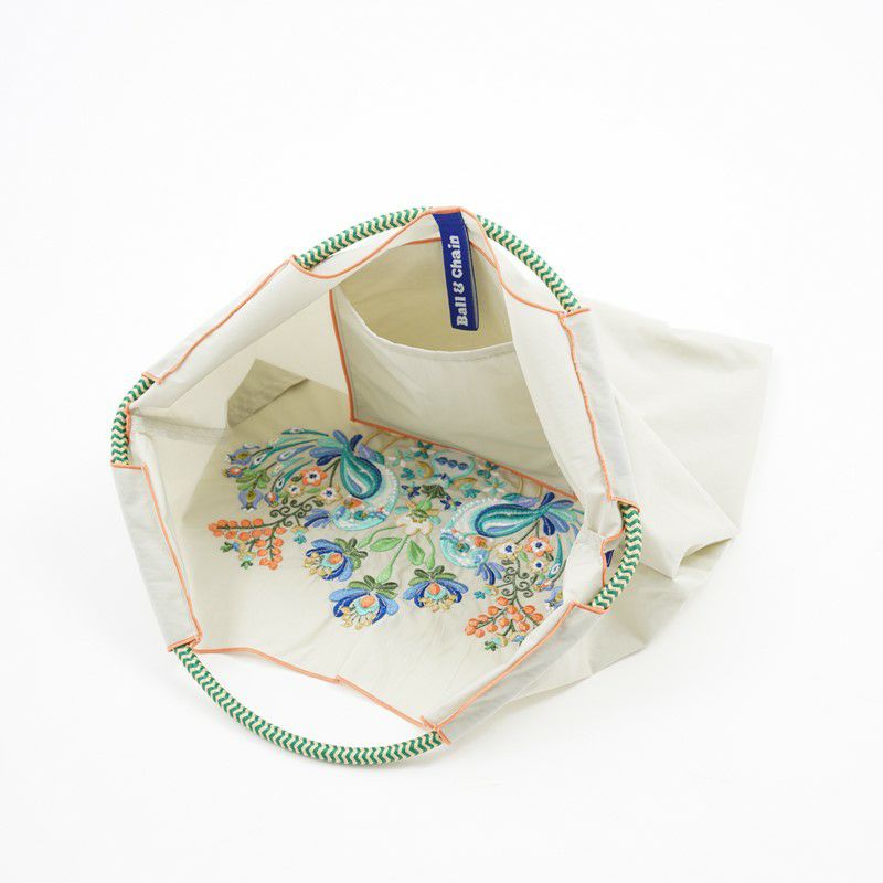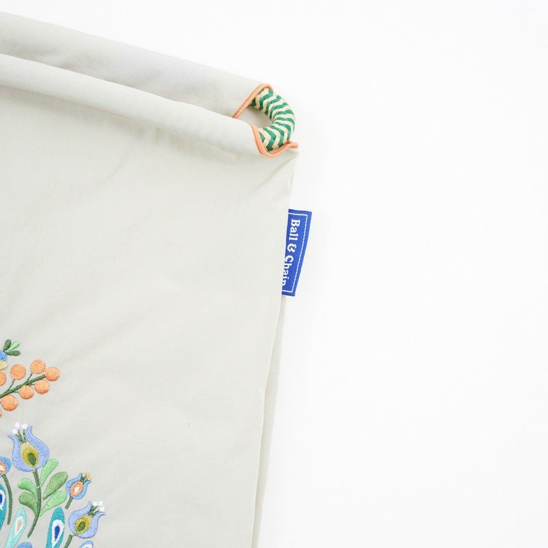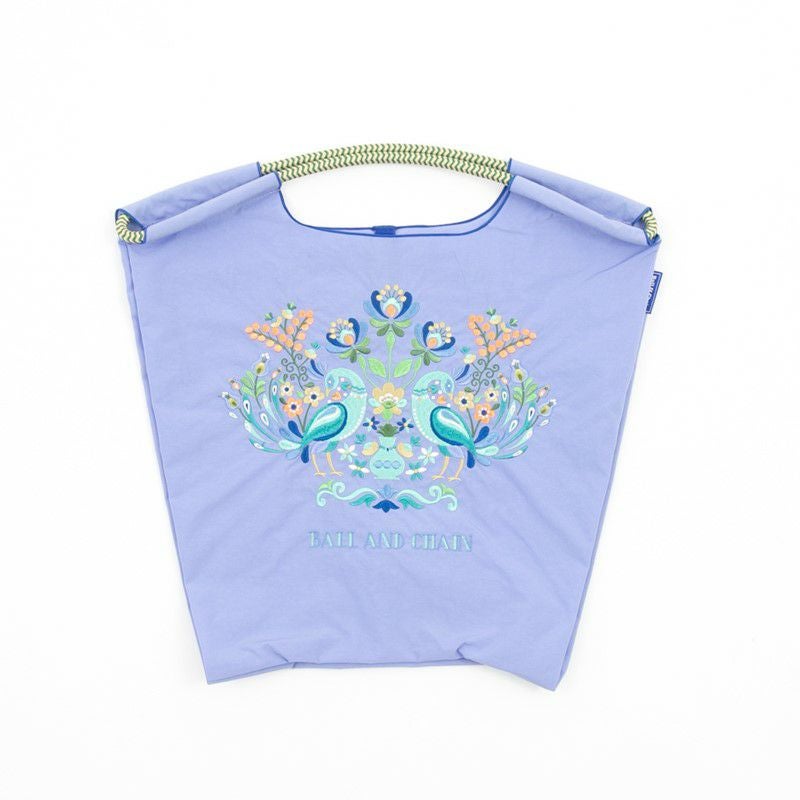 Ball and Chainは大切に使い続けたいと思える優れた デザインのショッピングバッグです。 耐久性、撥水性に優れた厚手のポリエステル素材に、 グラフィックデザインをそのまま「刺繍」で施すことで、 高級感がありデザイン性の高いバッグとなっています。 丸く折りたたみ付属のゴムバンドでとめると手のひらほどの コンパクトサイズになるため、持ち運びにも便利です。 普段のお買い物はもちろん、エコなプレゼントとしてもおススメです。