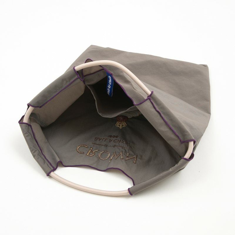 Ball and Chainは大切に使い続けたいと思える優れた デザインのショッピングバッグです。 耐久性、撥水性に優れた厚手のポリエステル素材に、 グラフィックデザインをそのまま「刺繍」で施すことで、 高級感がありデザイン性の高いバッグとなっています。 丸く折りたたみ付属のゴムバンドでとめると手のひらほどの コンパクトサイズになるため、持ち運びにも便利です。 普段のお買い物はもちろん、エコなプレゼントとしてもおススメです。