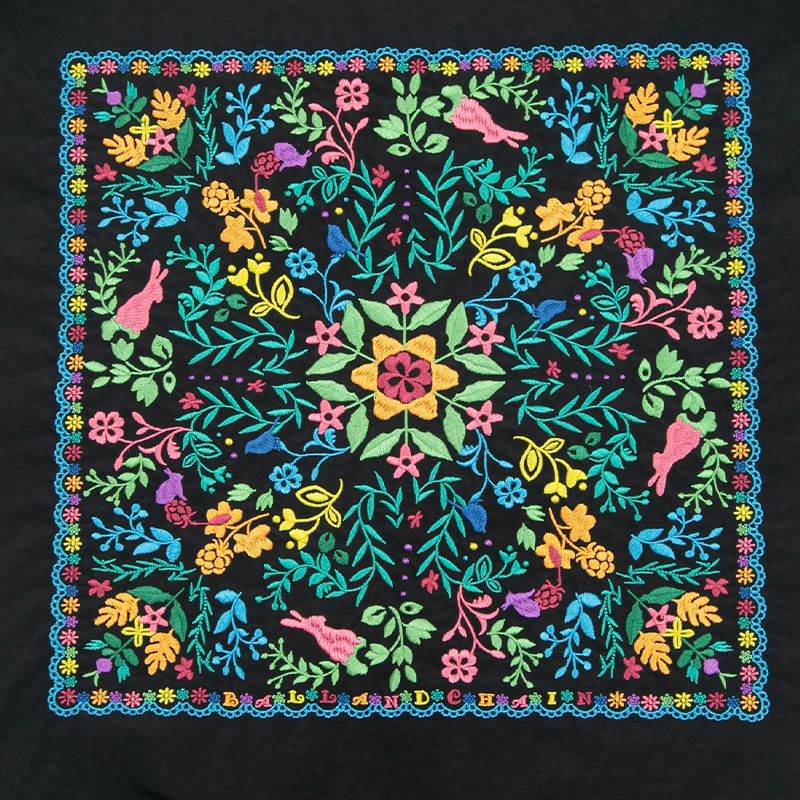 刺繍が目を惹くお洒落バッグ/エコバッグ 【Ball&Chain/ボールアンドチェーン】Flower bandana(フラワーバンダナ)Mサイズ・301051