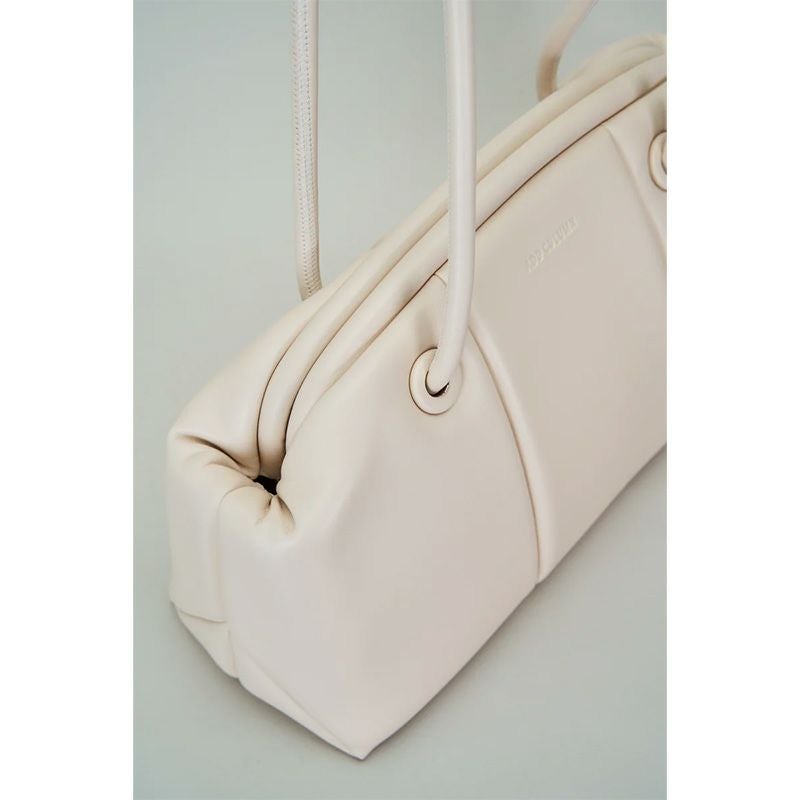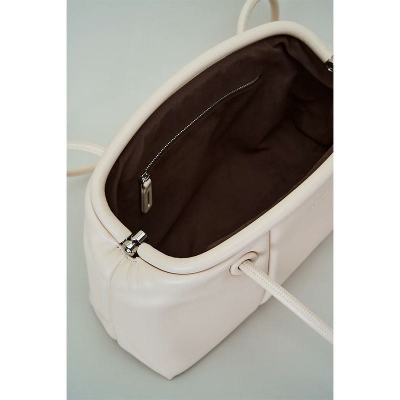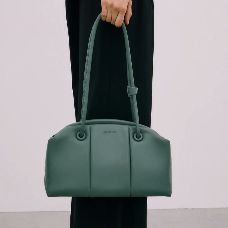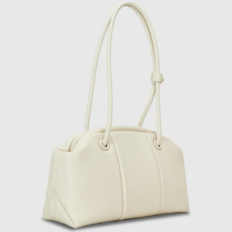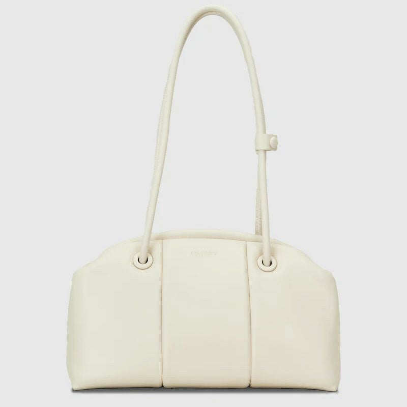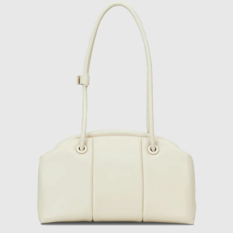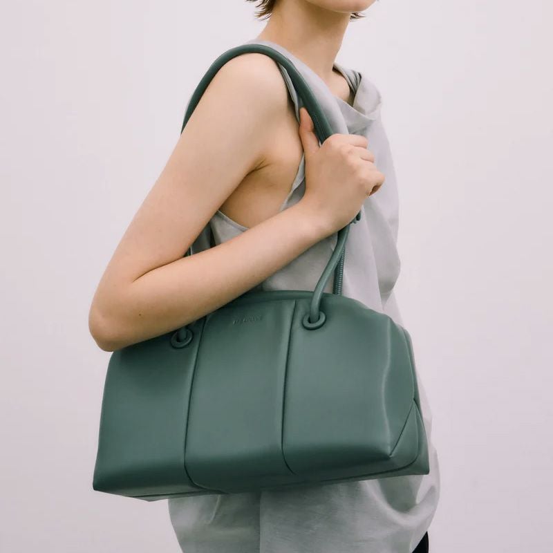 「PUFF THREE」からCLASP型をリリース。肉厚でマットな質感の素材で、クラシカルな雰囲気に仕上げています。肩掛けしやすいロングハンドルに、開閉しやすい口金仕様で利便性に富んでいます。長財布、スマートフォン、ポーチ、折り畳み傘やペットボトルなど必需品プラスアルファがしっかりと収納できるサイズ感。シンプルなデザインでビジネスシーンでもお使いいただけます。