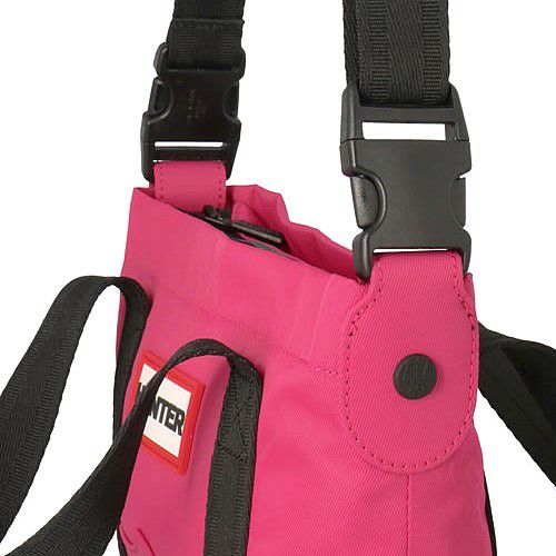 ショルダーストラップを装着できるサイドリリースバックルは、ショルダーストラップをつけずにボディの両サイドでもはめることができ、はめ込むと丸いフォルムになり可愛らしい印象に。シルエットの変化を楽しむのもおすすめです。