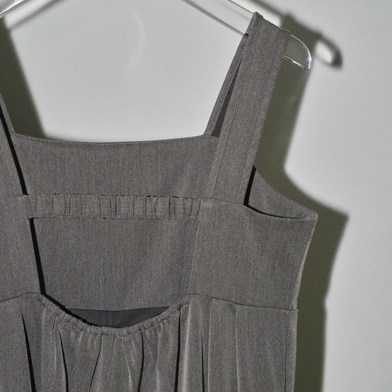 パンツ部分は生地をたっぷり使用し、ゆったりとした印象に。落ち感のある素材で、着ぶくれせず、ウエストのタックが動きを出してくれ、スッキリとした印象に。