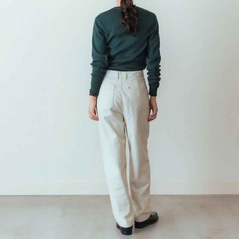 腰から裾、そして脇線に丸みを持たせたカービーパンツ。