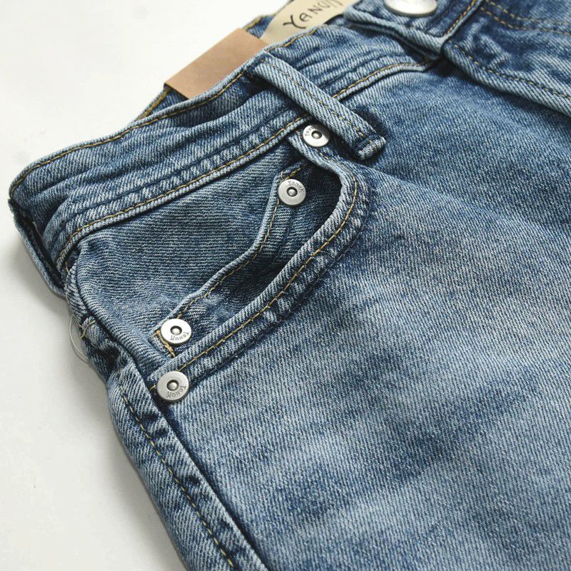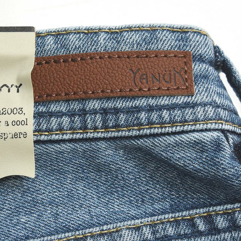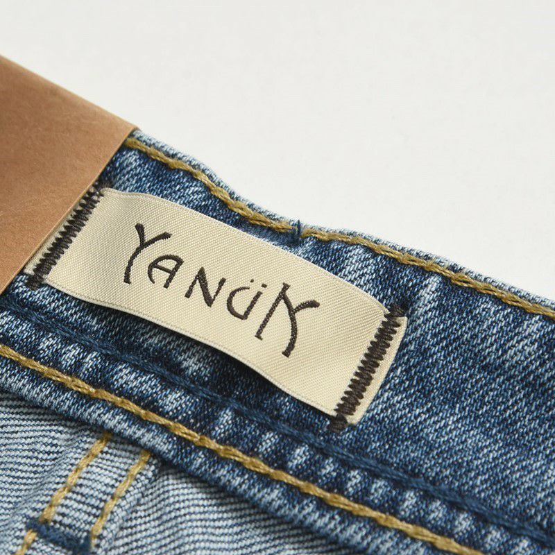 トップスが明るいカラーでも暗いカラーでも合わせやすい、通年使えるブルー色です。シルエットに映えるしっかりしたコントラストのあるスリ加工で、きれい見えしながらも本格的な加工感が魅力です。