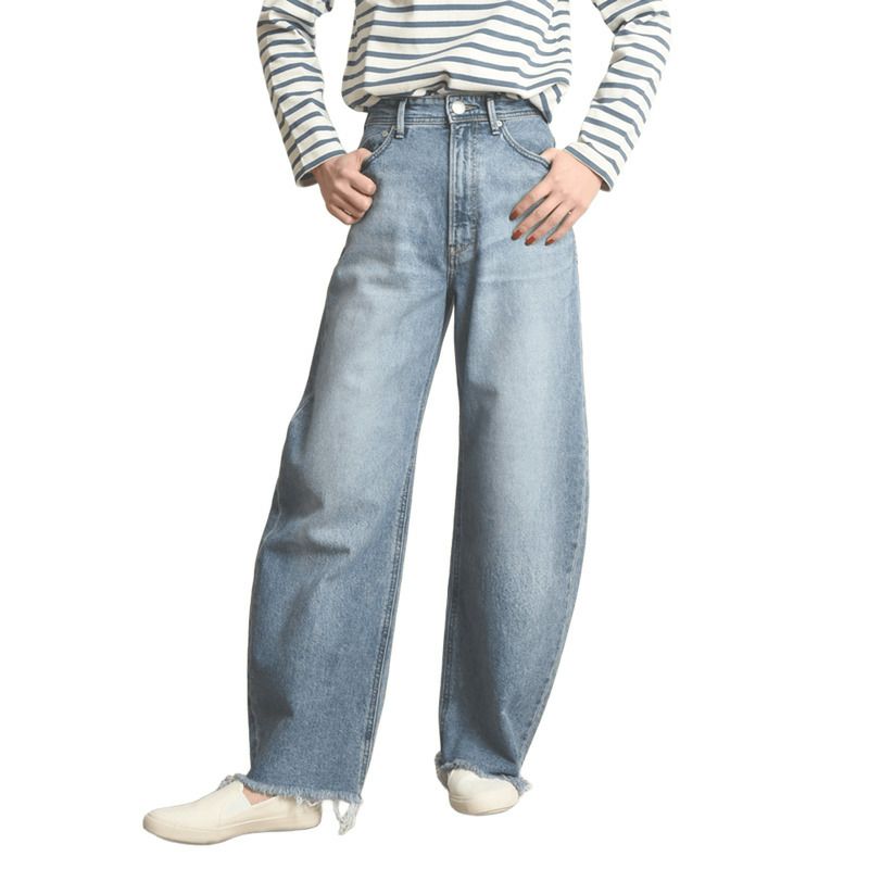 シンプルな装いにもこなれた着こなしに見せてくれます。裾は切りっぱなしでヴィンテージな雰囲気をプラスしています。