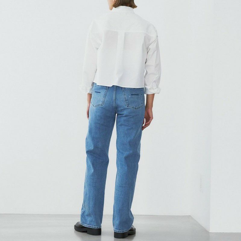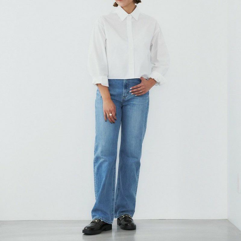 深さがある股上にゆるっとしたストレートが特徴のLEA。ゆとりのあるストレートは野暮ったくなりがちですが、LEAはパターンにこだわることで美脚に、そして脚長に見せてくれるYANUKらしいゆるストレートデニムです。