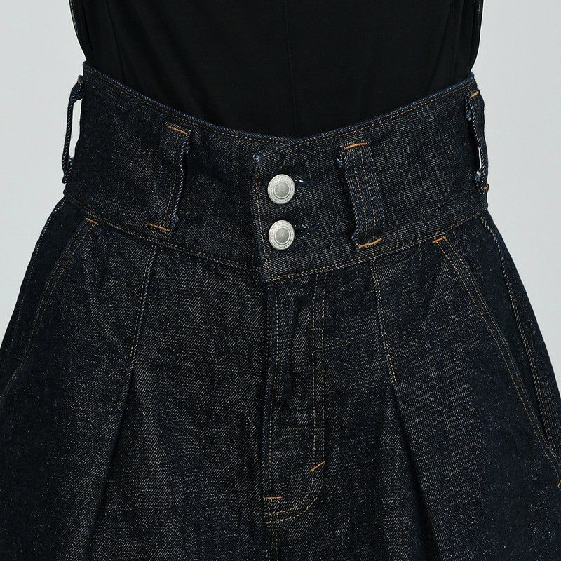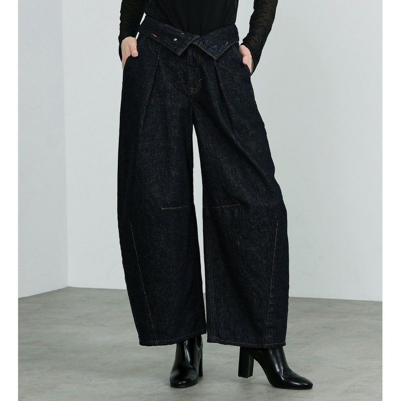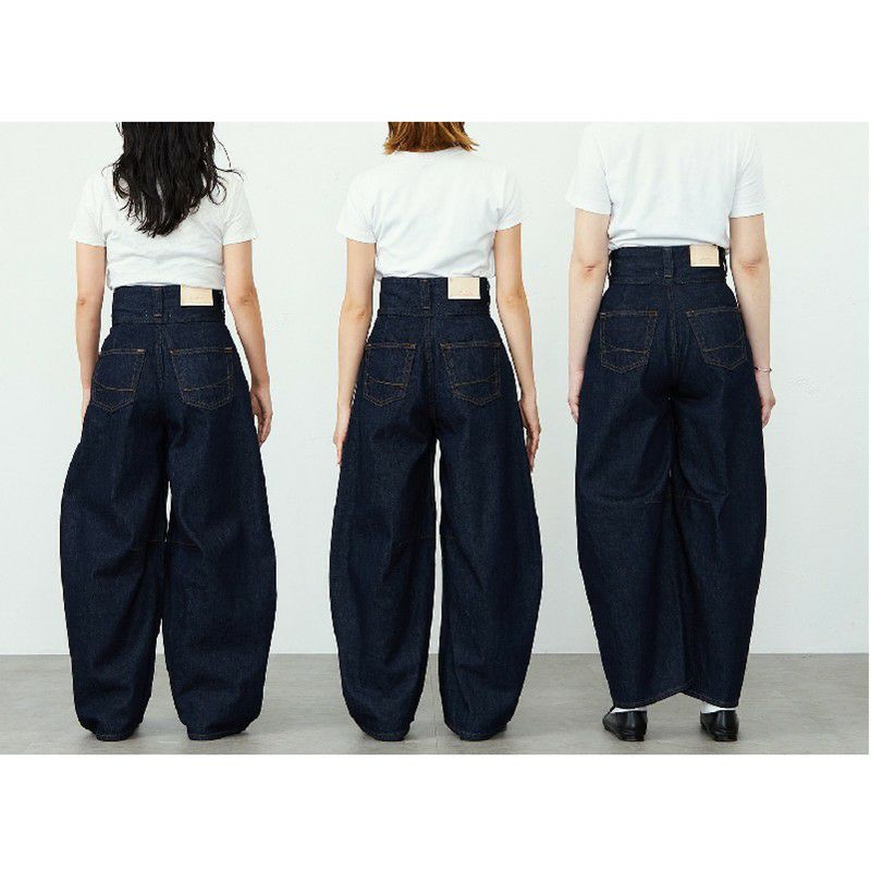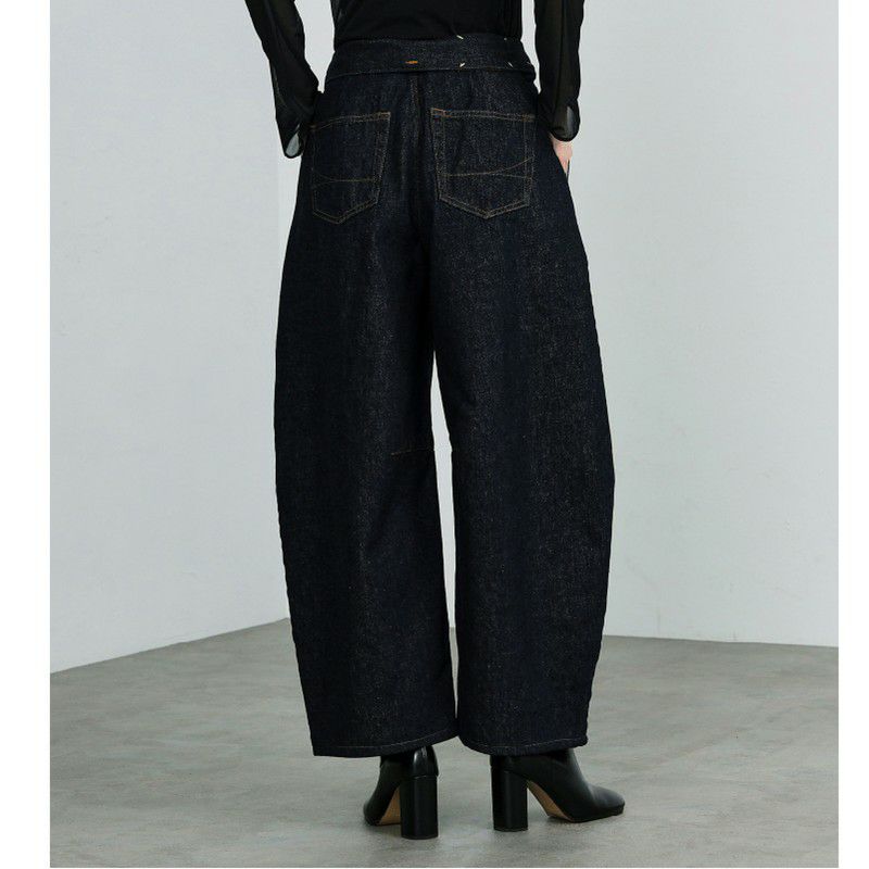 フォルムにこだわった立体感のあるバルーンデニムパンツ。スソにダーツを入れることで生まれるトレンドのカーブのライン。
