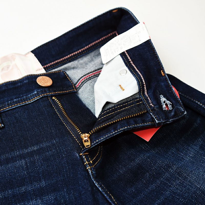 こちらは、すらりとした脚長シルエットを演出するブーツカットパンツです。しゃがんでも後ろが美しくフィットし、前から見るとまっすぐなウエストラインのフラットフロント&カーブベルトを使用し、ポケット位置や大きさ、ステッチの幅にまで凝った小尻仕様、脚がまっすぐ細く見えるように研究されたパターン設計など、美脚へのこだわりが魅力になっています。膝下から裾へかけて広がるブーツカットが脚長シルエットを印象付けます。腿やヒップラインにフィット感をもたせているので、カジュアルながらもきれいめな表情に仕上がっています。程よくストレッチ性を備えた快適な穿き心地も魅力。デイリーでマルチに活躍する1本です。