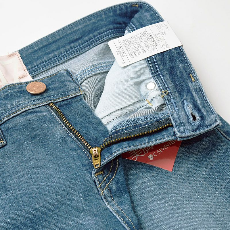 こちらは、脚長効果をもたらしてくれる定番スキニージーンズです。しゃがんでも美しくフィットするウエストライン、ポケットの大きさやステッチの幅にまでこだわった小尻仕様、足がまっすぐ見えるよう研究されたパターン設計で美脚演出にこだわったデニムパンツ。ベーシックな5ポケットでデイリーで気負いなく楽しめるのが魅力になっています。定番として押さえておきたいアイテムです。