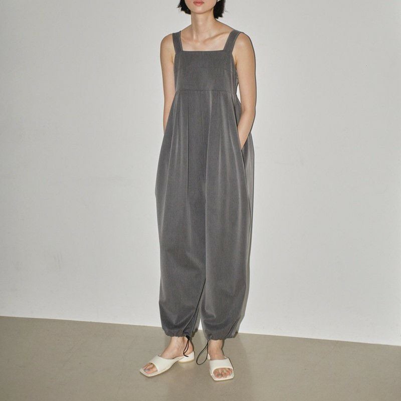 キレイ目な印象の国産ツイル生地をカジュアルなシルエットのコンビネゾンに落とし込んだ一枚。