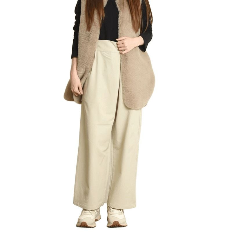 ラップパンツのようなフロントデザインが、さり気なくお腹周りもカバー。デザイン性の高いパンツですが、ストレッチ性や撥水加工などの機能性にも優れているため、小さなお子様がいらっしゃるお洒落ママさんにもおすすめのアイテムです。