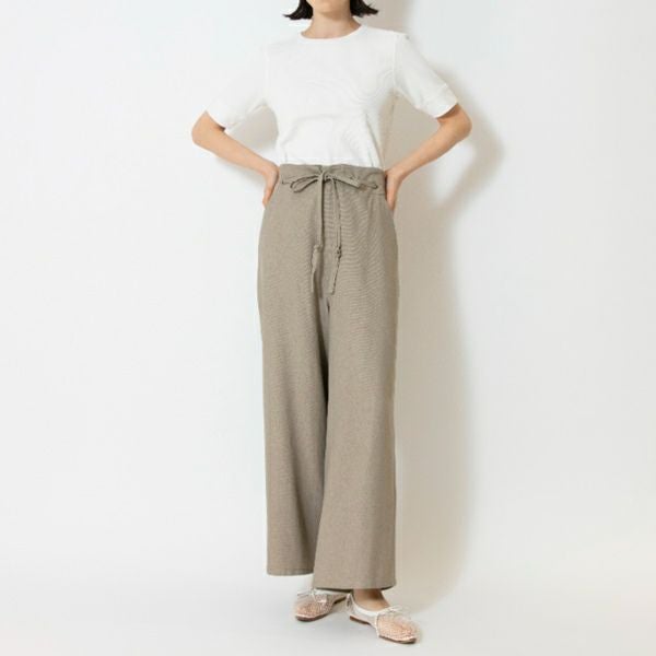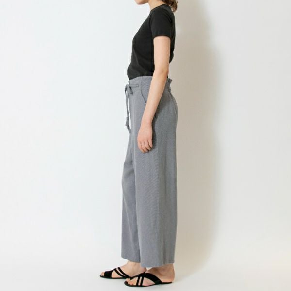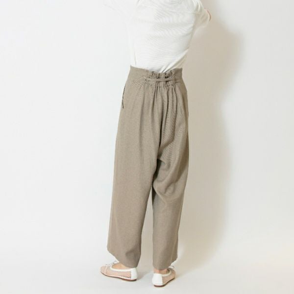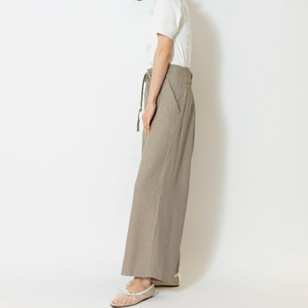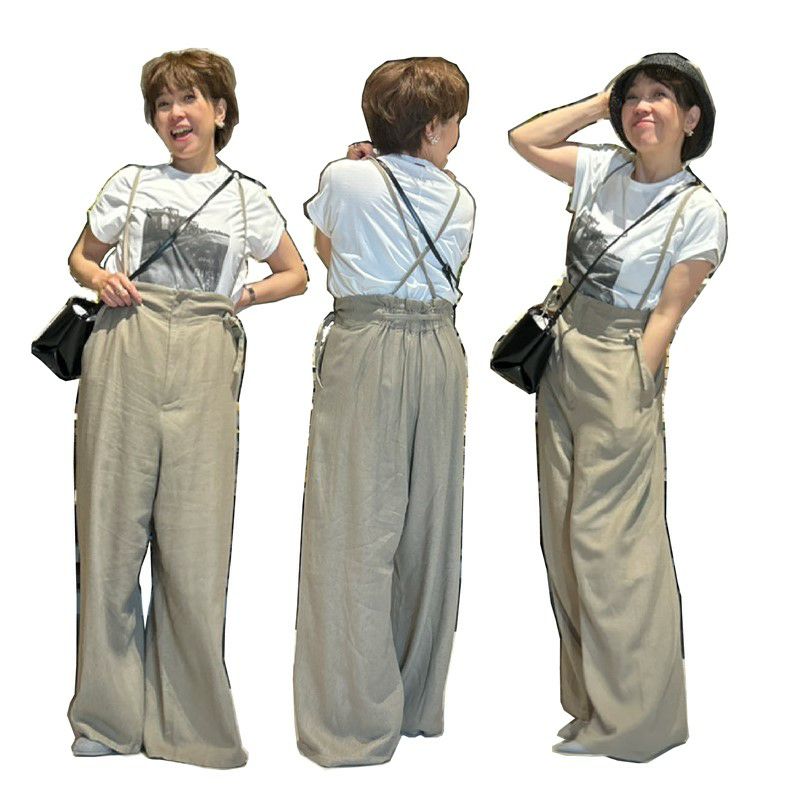 夏らしいコットンリネン混素材。合繊が入っているため、落ち感がありつつもナチュラルな雰囲気に。程い大人っぽさと、カジュアルな緩いシルエットが魅力的です。