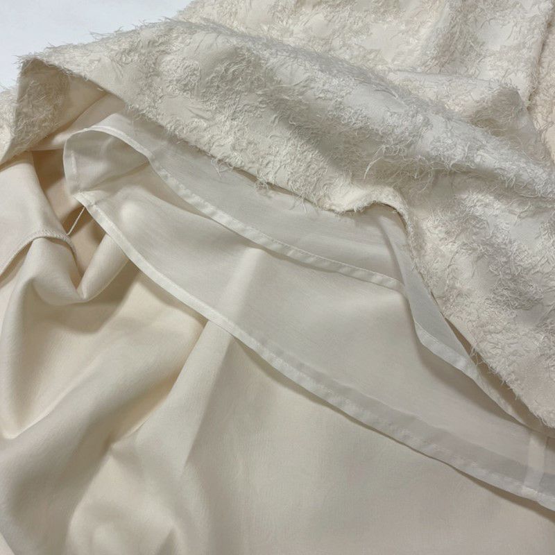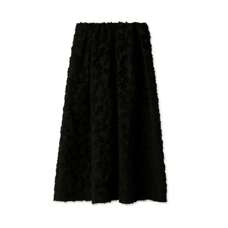 表情豊かなジャガードがユニークなフレアスカート。表面に凹凸のある毛足の長いジャガードは存在感があるため、ボリュームを持たせながらも、腰まわりからミドルヒップラインはすっきりと。女性らしいシルエットに仕上がっています。