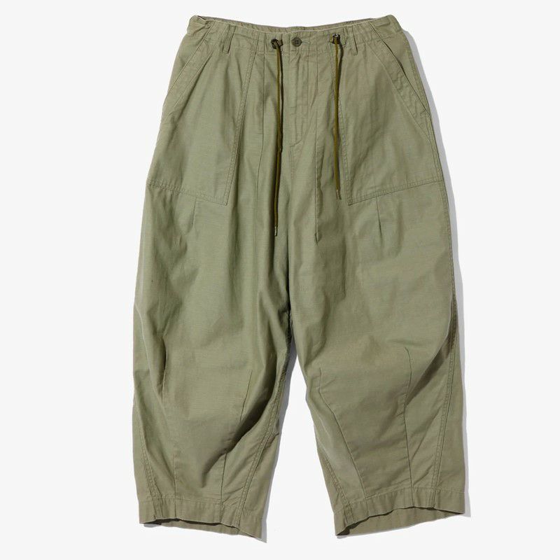 リラックス感のあるシルエットで、開放感のある穿き心地も魅力的。フロントのL字型のポケットやサイドアジャスターなど、ファティーグパンツのデザインを落とし込んだデザイン。