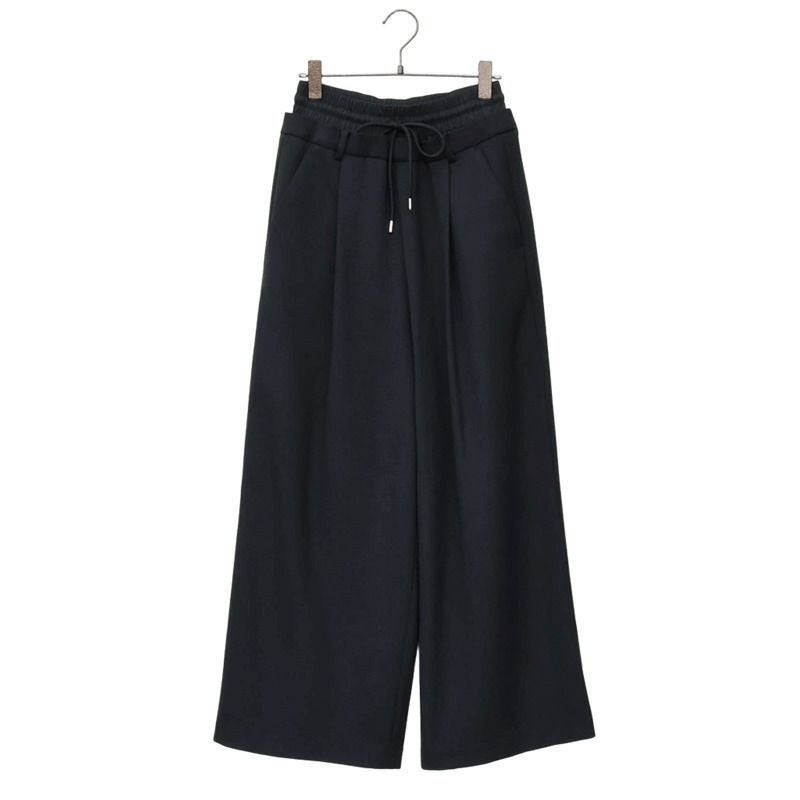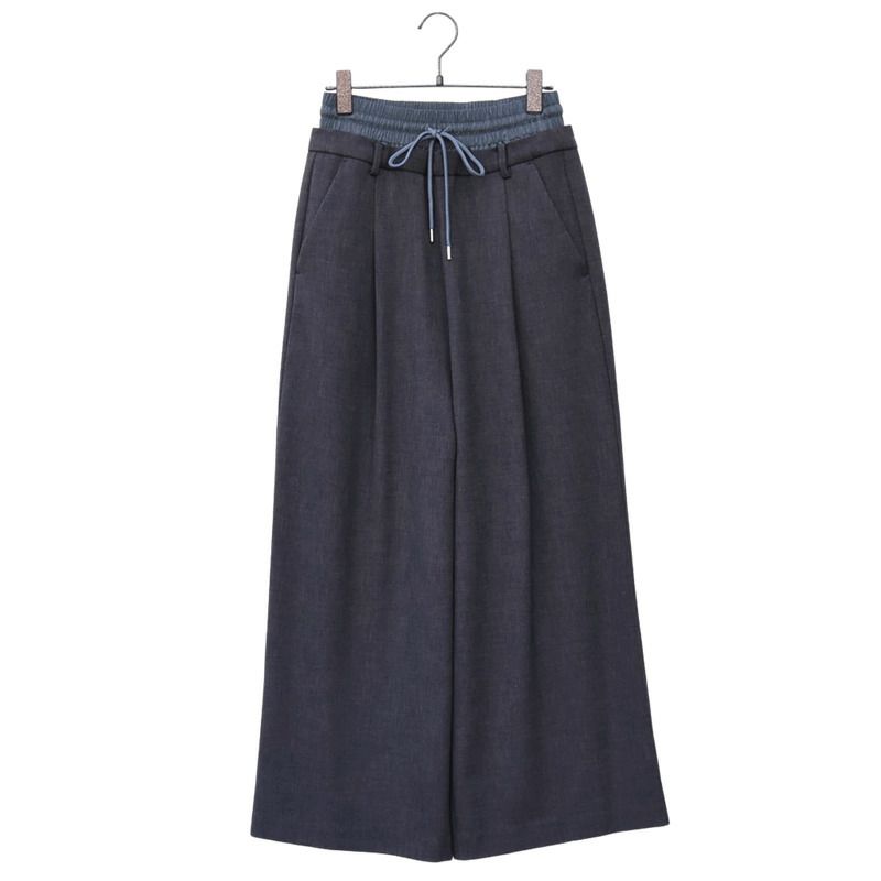 ワイドシルエットでボディラインを拾わず、Wウエストの総ゴム部分のおかげでハイウエスト効果で美脚見えが叶います。