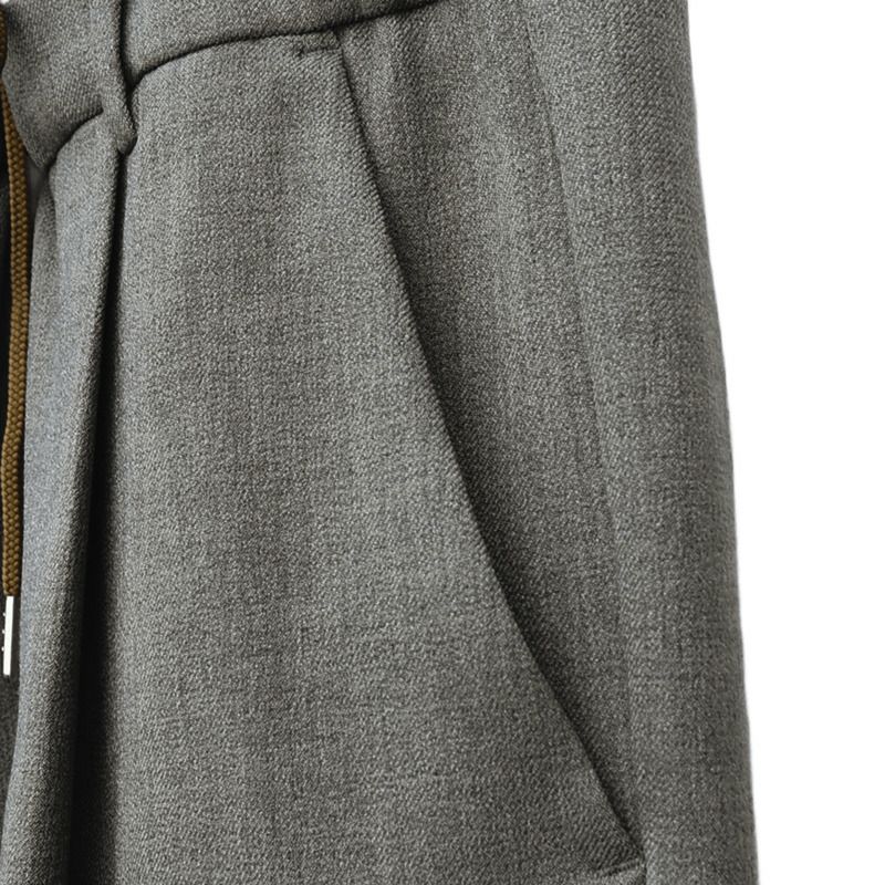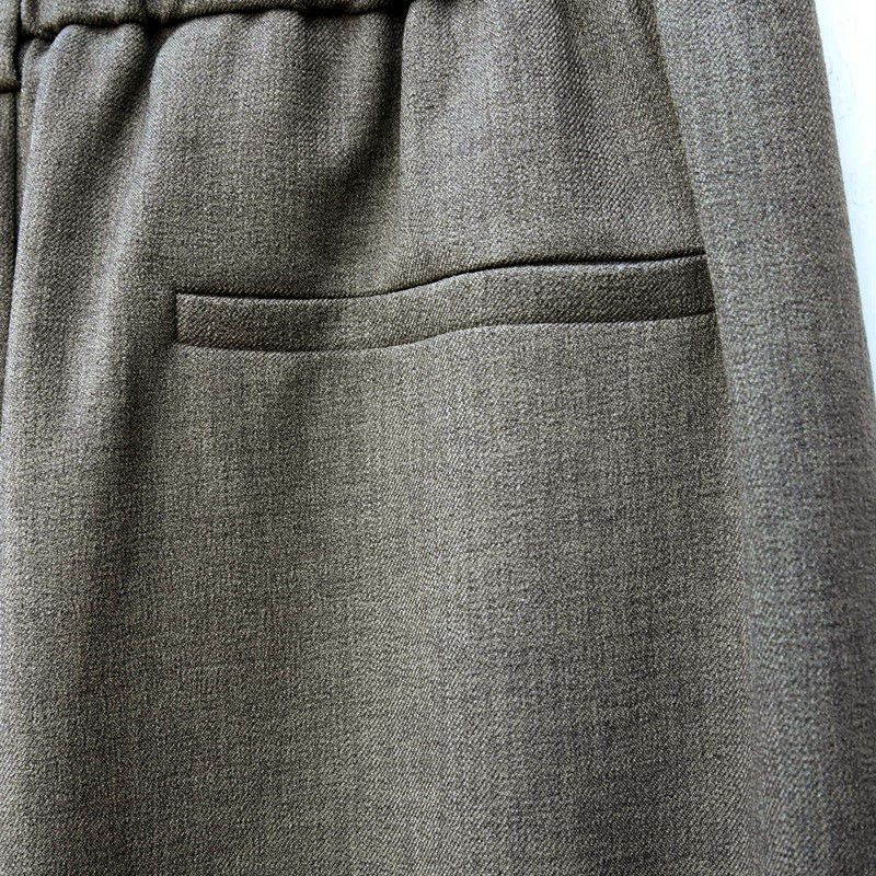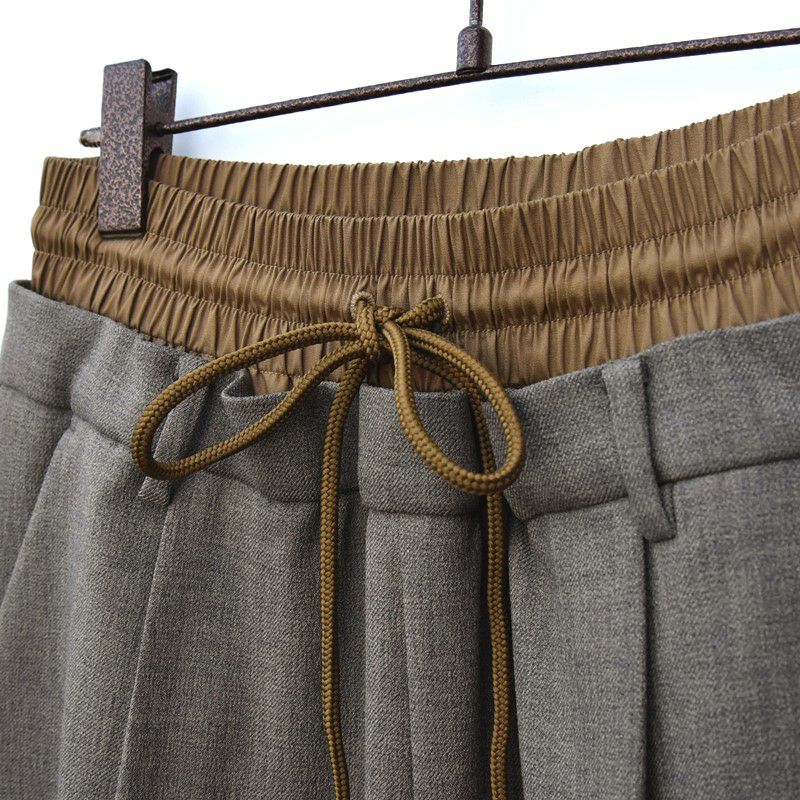ウエスト部分は総ゴムになっており、イージーパンツ感覚でご着用いただけますがスラックスのような見え方をするため、フロントインしてwウエストデザインを見せつつも、楽にかっこよく決まるおすすめの一本です。