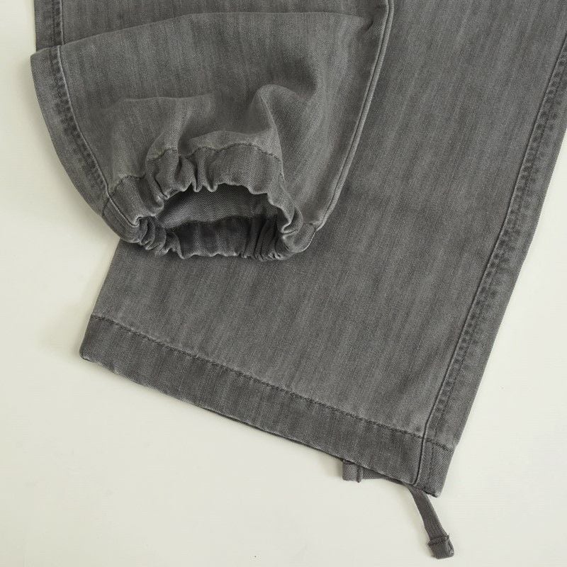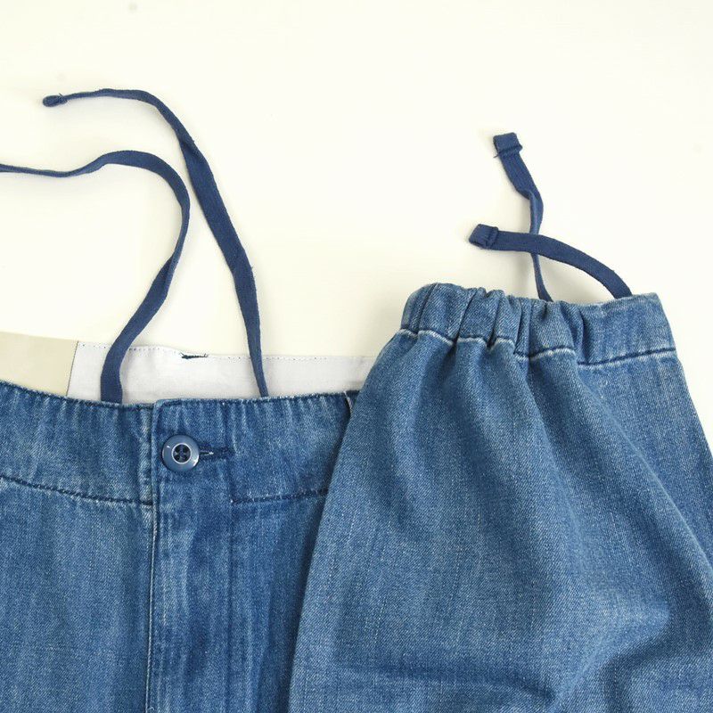 ウエストは内側についたドロスト紐で調節が可能。裾にも紐が配備されており、絞らずゆるっと穿くのもあり、絞ってメリハリをつけて穿くのもありのスタイリングに合わせてアレンジが可能です。