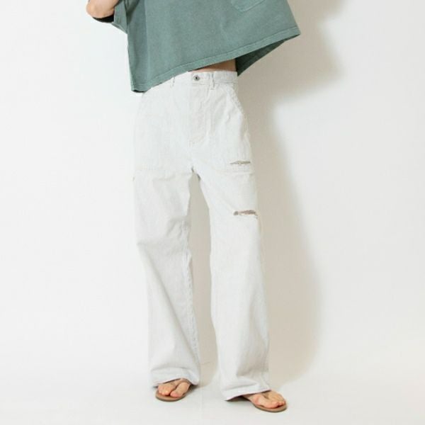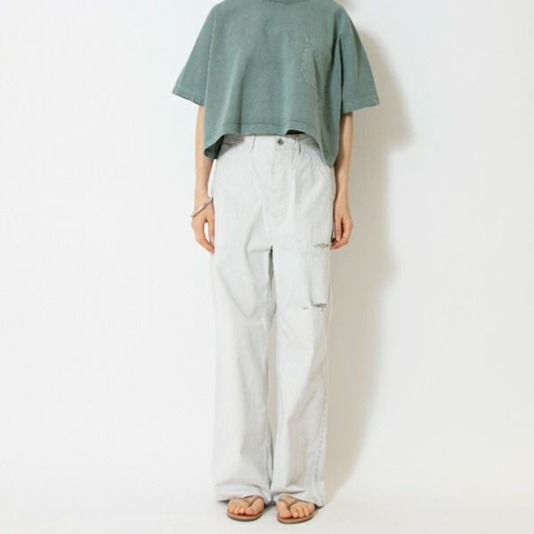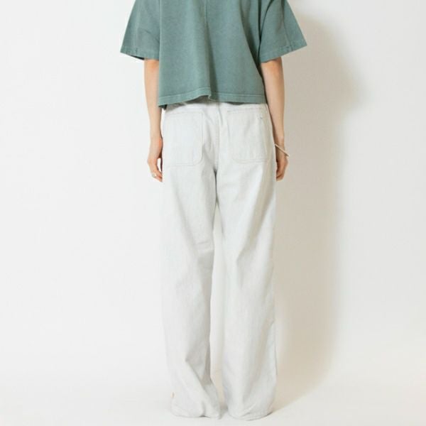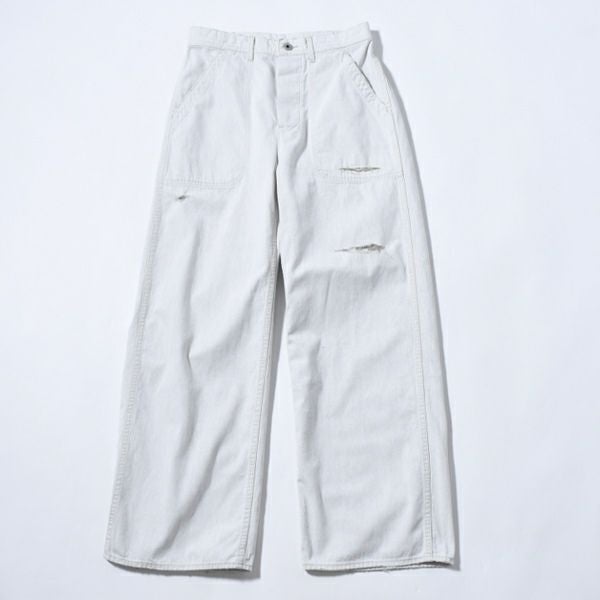 縦糸を白、横糸をグレーというJOHNBULLオリジナルで縫ったホワイトデニムで、真っ白過ぎない、うっすら灰がかったような、取り入れやすい色味の1本。