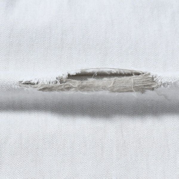 左足のダメージ部分に、横糸のグレーがちらり。さりげないアクセントになっております。