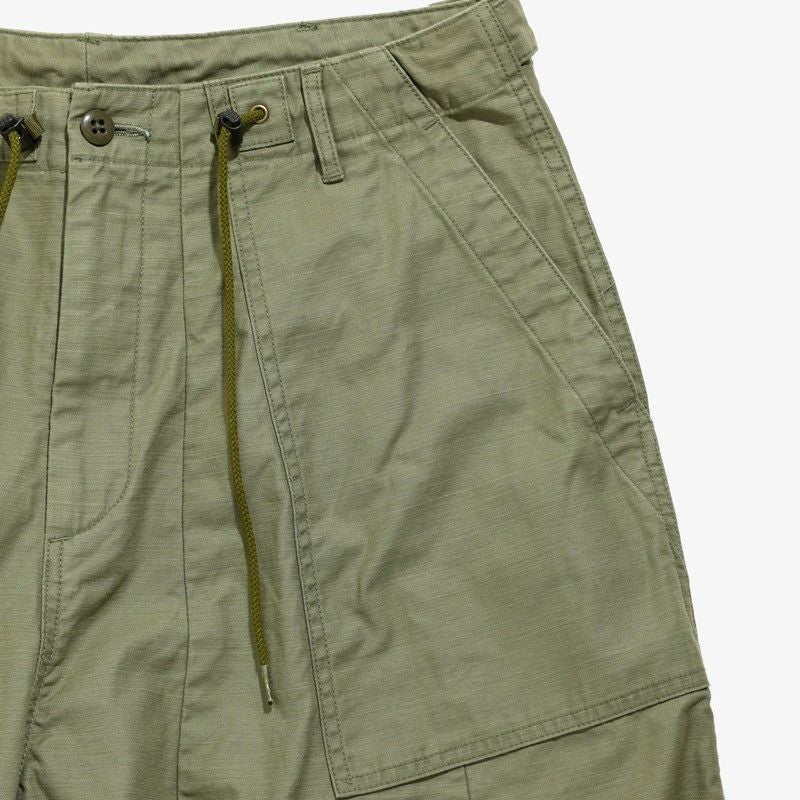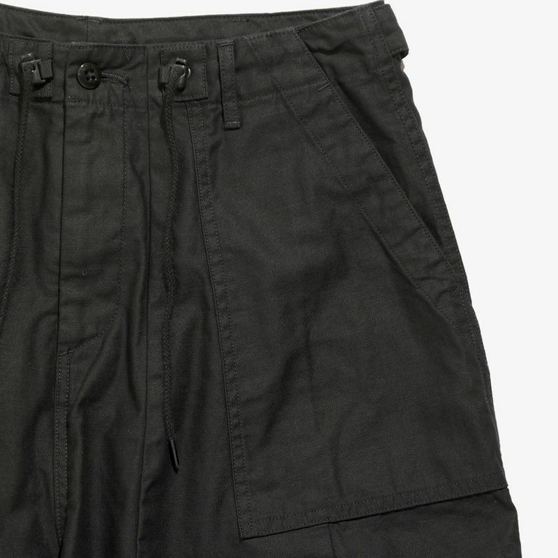 リラックス感のあるシルエットで、開放感のある穿き心地も魅力的。フロントのL字型のポケットやサイドアジャスターなど、ファティーグパンツのデザインを落とし込んだデザイン。