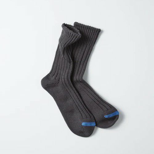 「R1398 CHUNKY RIBBED CREW SOCKS」の後継品番として、見た目の雰囲気はそのままに、少しだけ生地の厚みを抑えることで、様々な靴とコーディネートできるソックスとして生まれ変わりました。