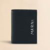 ミルドカーフスキン製二つ折りウォレット。 フロントにハンドステッチのマルニメンディングロゴ。 スナップボタン留め。 スナップボタン式コインポケット、紙幣用コンパートメント、カードスロット4つ。