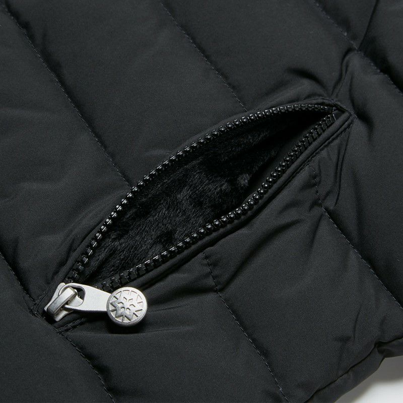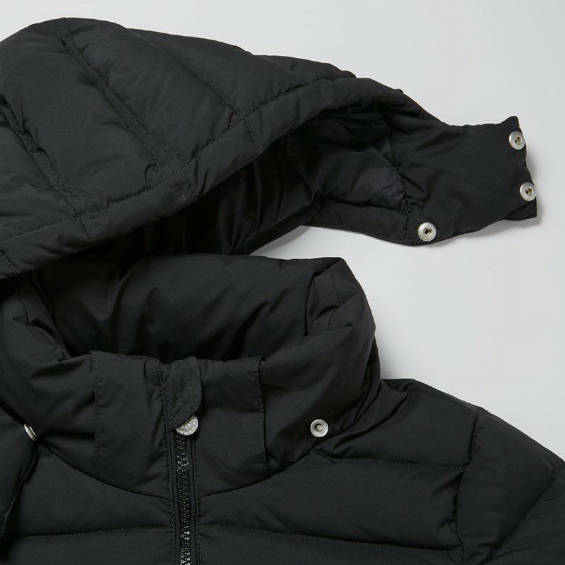 軽量でロフト感のあるフランス産ダックダウンを充填しており、表地には光沢感を抑えたピーチスキンのような質感とナチュラルなストレッチ性が魅力の非常にソフトな素材「スムース」を採用しています。