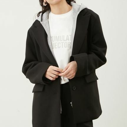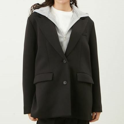 ジャケットとフーディーを重ね着しているかのような、ドッキングタイプのアウター。