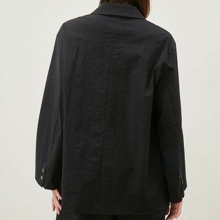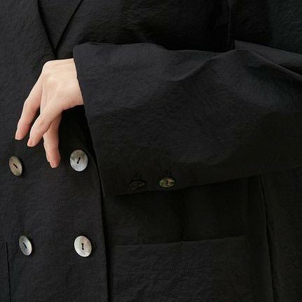 透け感もありながら程よいハリがある素材感で、さっと羽織ってもサマになり、身体のラインも拾わずに着こなせます。味のあるシワ感もカッコいい雰囲気。