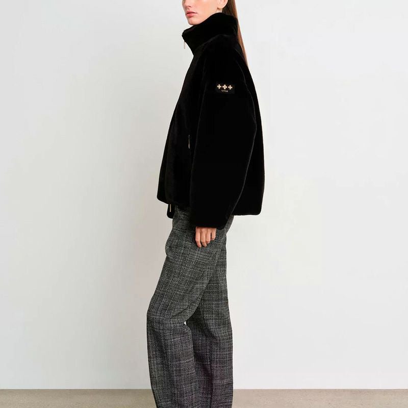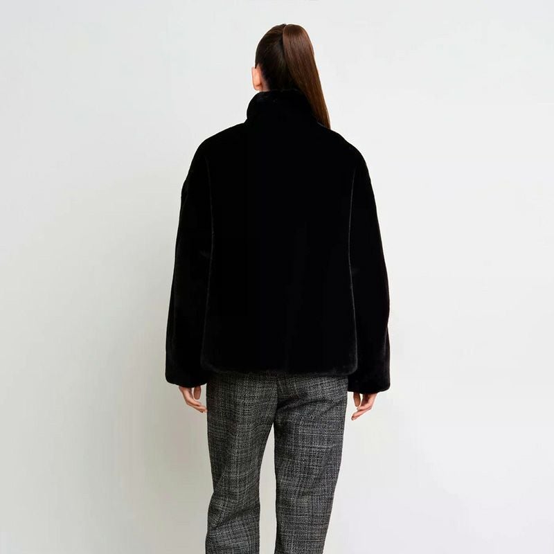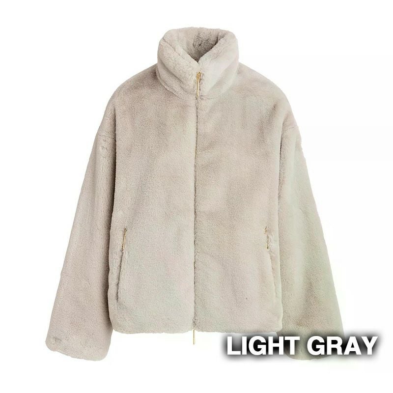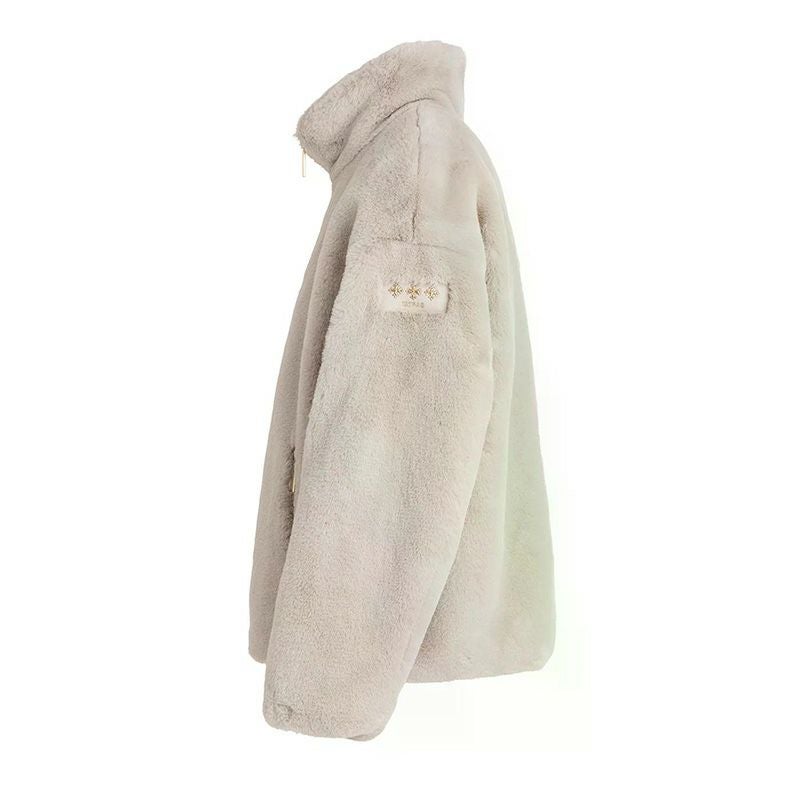 ラビットファー調のエコファーを使用した、リュクスな印象のスタンドカラーブルゾン。