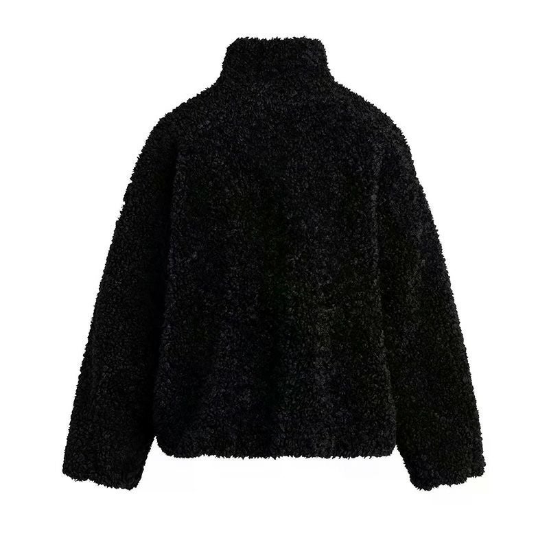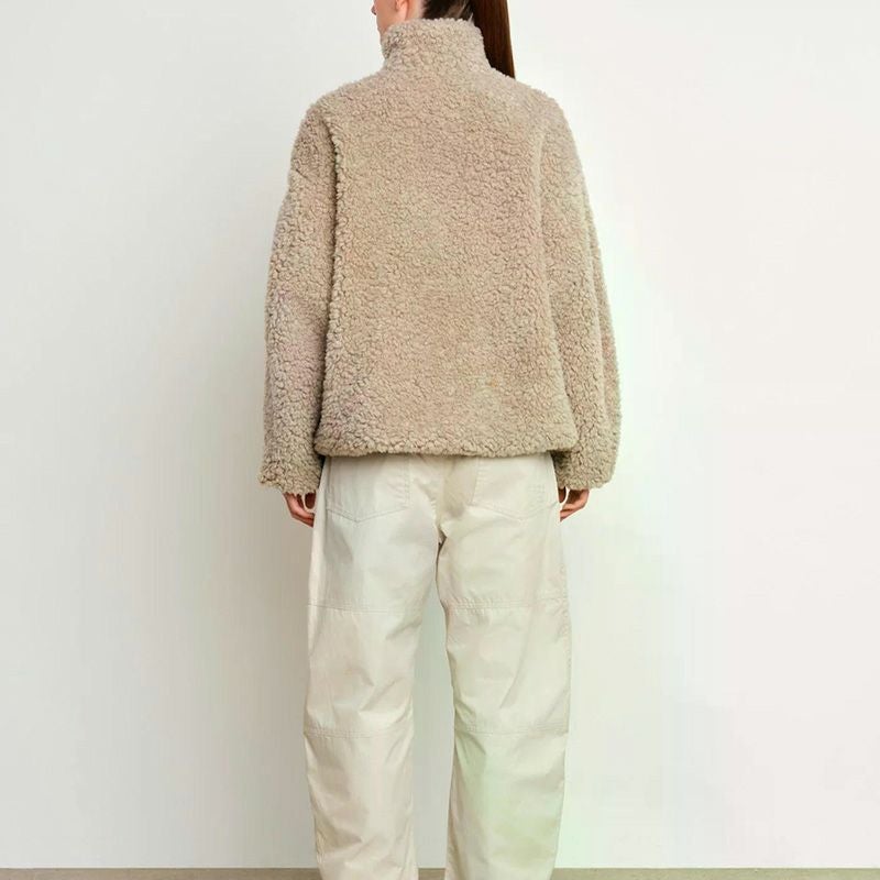 ポリエステル糸でウールのような質感を表現した、シープ調ボアブルゾン。
