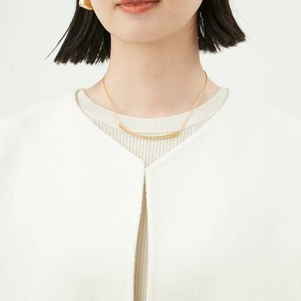 また浅いVネックのラインがポイントで、羽織った時に顔周りのラインがきれいに出て、フロントまですっきりと見せてくれます。