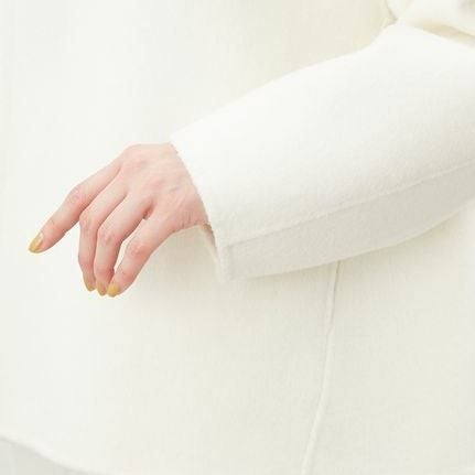コンパクトな丈感ながら、ウール50%混の上質な素材で程よい張りと厚みがあるため、しっかりとAラインに広がるシルエットが出て着やすいのが特長。背中側や袖に入ったタックで立体感もあり、インナーを選ばずゆったりと着こなせます。