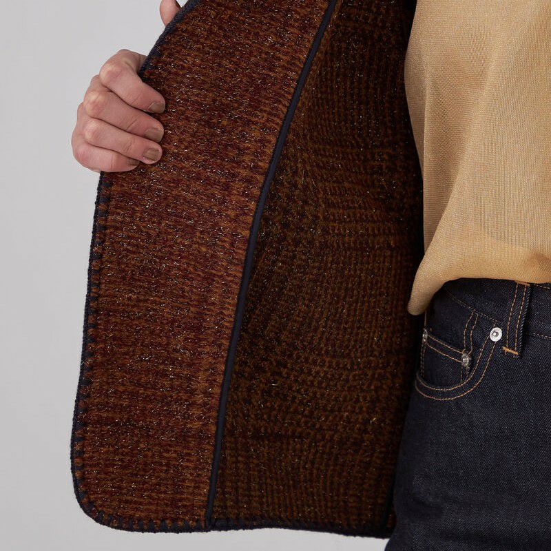イタリアのテキスタイルメーカーにて開発された特殊な製法で編み上げた素材を使用したジャケット。