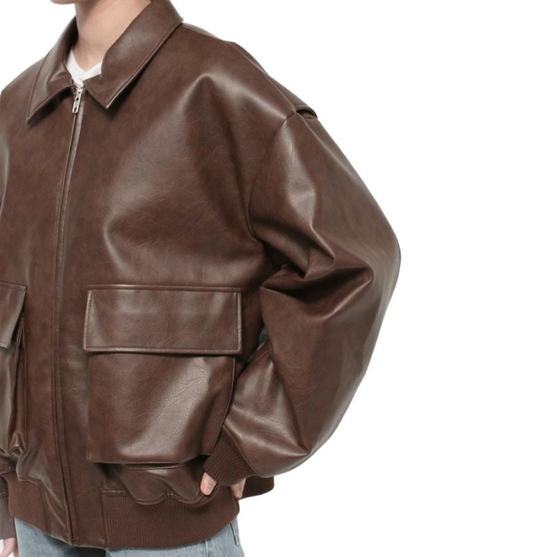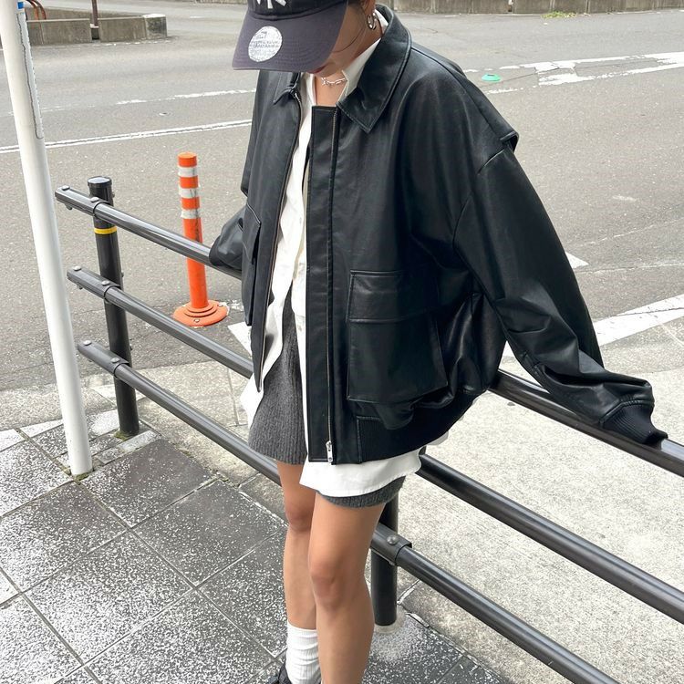 ヴィンテージライクなデザインを踏襲しメンズライクな雰囲気に仕上げられたフェイクレザーブルゾン。