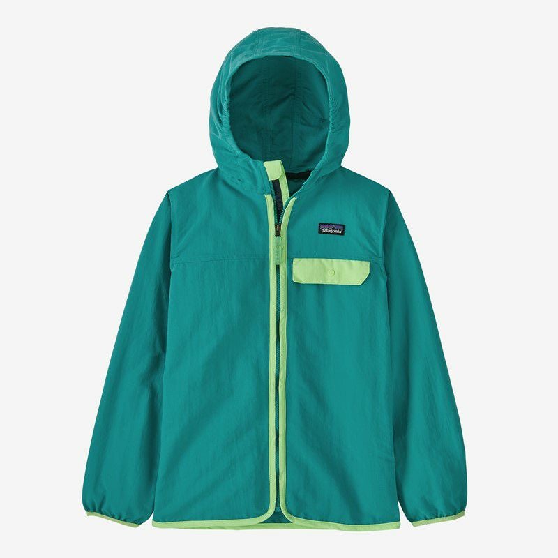 素材は耐風性を備えたリサイクル・ナイロン100%で、UPF(紫外線防止指数)40+のUVプロテクションを提供し、軽度の水分を弾く有機フッ素化合物(PFC/PFAS)不使用のDWR(耐久性撥水)加工済み。縁の両サイドに伸縮性を備えた3枚パネル構造のフードはしっかりとフィットし、ウインドフラップがすきま風を遮断。手を温める2つのハンドウォーマーポケット付き。