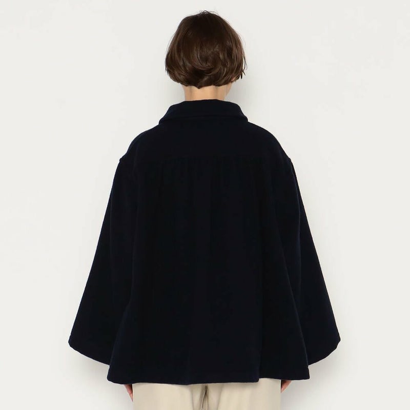 滑りの良いポリエステル裏地を袖裏に配してスムーズな着脱を考慮。背中にたっぷりのギャザーが入ったカジュアルながらも洗練された印象のデザインです。