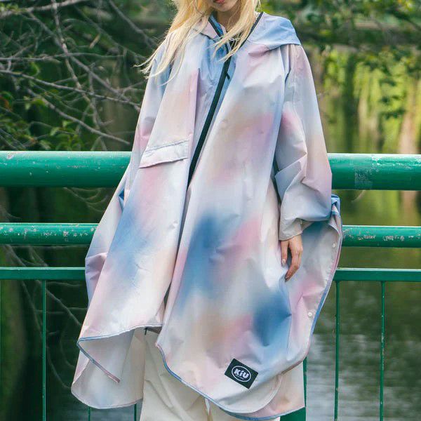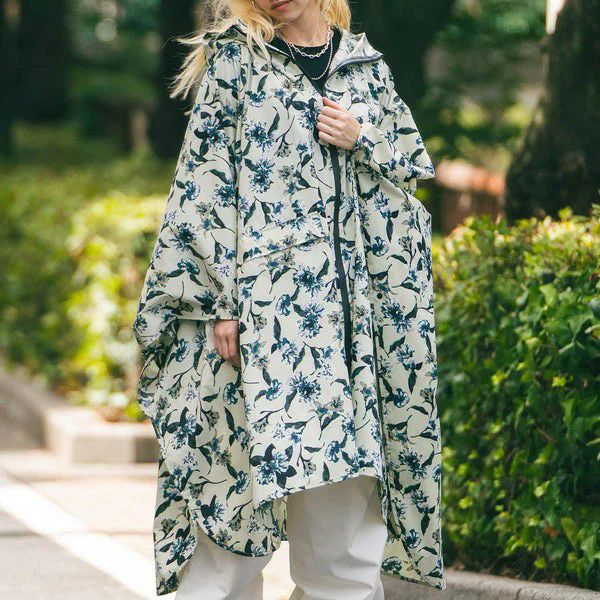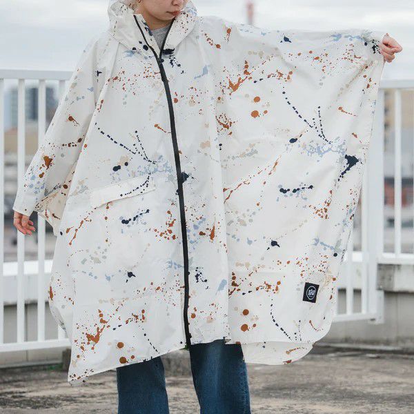 止水ファスナーで前から雨の侵入を阻止。頭部はドローコードで調節できるため、風の強い日でもフードが外れにくい仕様。外側のポケットに携帯や財布などを入れることができ、ちょっとしたお買い物やお出かけの際に使用しやすいタウンユース向けの1着。