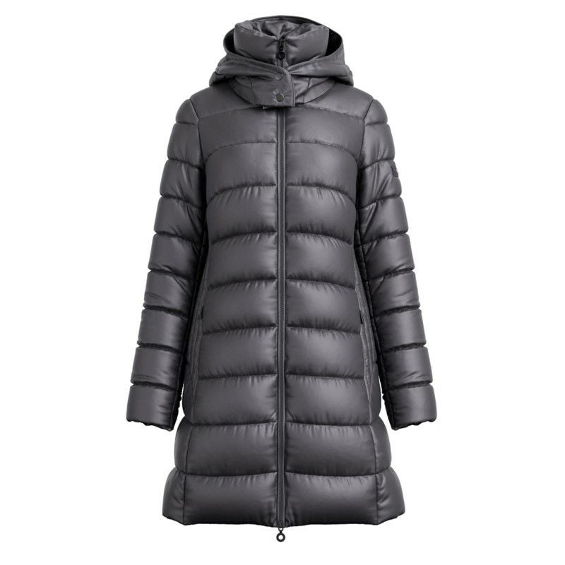 落ち着き感のある上質な光沢とソフトな風合いが魅力のミドル丈のダウンコートは、シンプルなデザインンを活かしてシルエットに徹底的にこだわったアイテム。