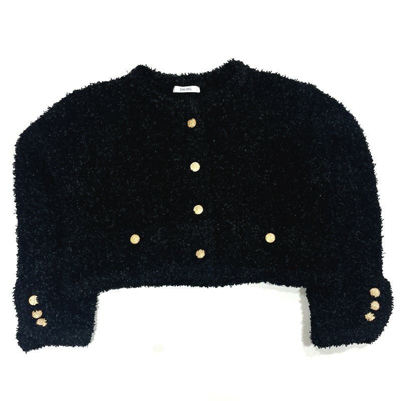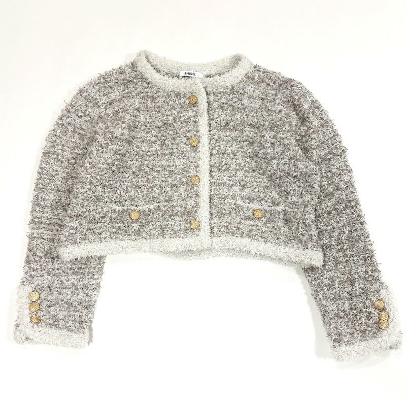 上品で女性らしいデザインが特徴のSNIDEL定番のツイードニットカーディガン。