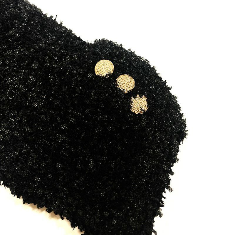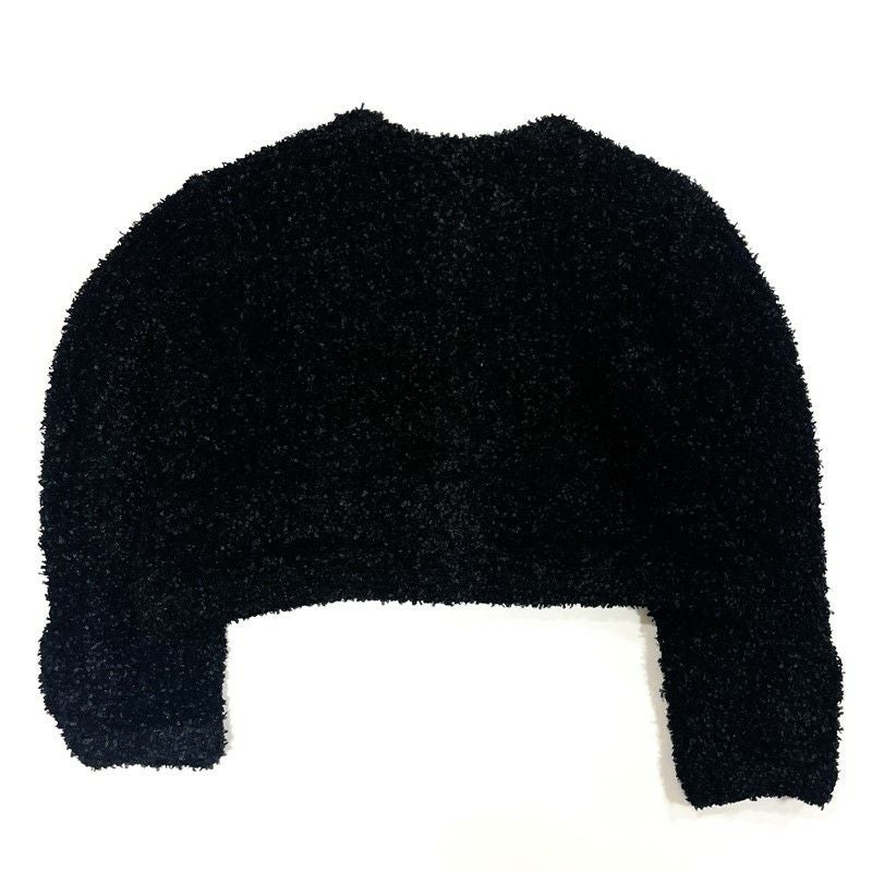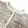 表情のある編地とラメ糸を用いることでアップデートされたデザインに。フロントや袖口、ポケットにあしらわれたメタルボタンがクラス感を高めるポイントに。
