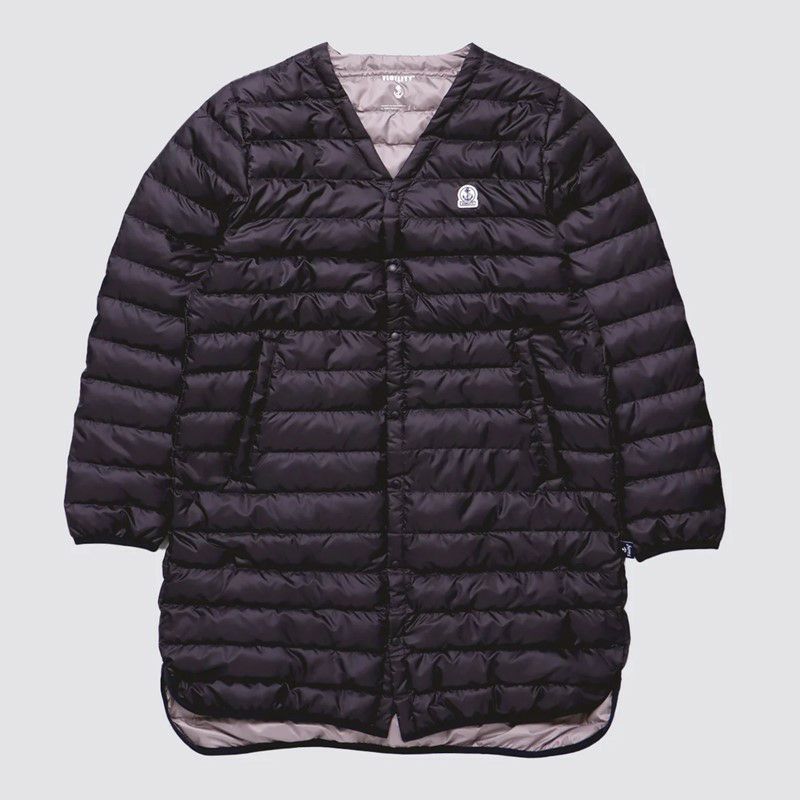 撥水性、透湿性に優れた高密度に織られた日本製生地を使用したロング丈のダウンジャケット。