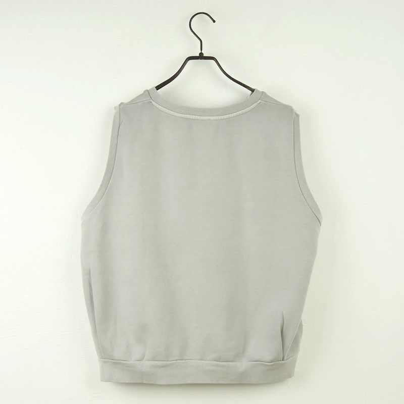 裏毛のスウェット生地を使用したVネックベスト。まだまだ半袖着たい!けど秋っぽくアレンジしたい!そんなにオススメです。夏のスタイリングにプラスアルフェするだけで秋スタイルにシフト。